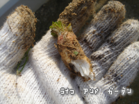 スコップでガンガン掘ってったら小さなコヤツが出てきたの。もっと長かったんだけど、折れちゃった