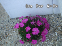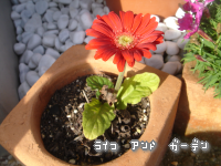 元気に咲いてます♪ガーベラと なでしこちゃん。の図。